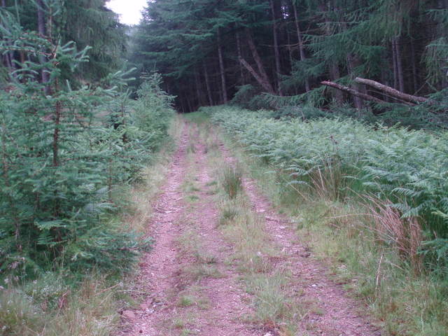 East of Moss-side, at NO699916, take a track south which climbs across the west side of Blarourie to a gate at NO700897. Follow a track southeast past a ScotWays sign marking the Kerloch path junction. Continue southeast, skirting the edge of the forest between Shillofad and North Dennetys. Descend to cross the Burn of Sheeoch at a ford, skirt the west side of Monluth Hill and meet the main forest road at NO733868. Turn south here to cross a bridge over the burn, and as a result of forestry, rather than follow the historic route, it will be necessary to follow the main forest road southwest then southeast around the west side of Leachie Hill. The historic line is regained to descend past the site of Maxie Well to Chapelton Croft (NO736832).