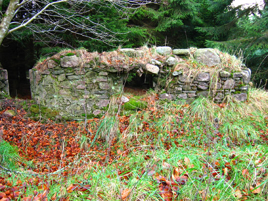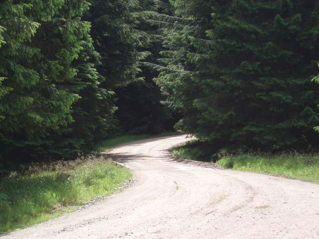 This old route leaves a small parking area at its north end and rises up a steep tarmac road which is the access to the Durris transmitter. Just before reaching the transmitter site, turn left onto a track at a waymarker (NO765900). After a short distance, a right turn (south) is made onto a footpath following a break in the forest used by power lines. This path is followed until it crosses a forest track at NO766886, then head downhill until making a right turn (southwest) at a sign onto a main track. This is followed south until a left turn at another sign (NO764873) to cross the Cowie Water by a concrete bridge. The road rises and passes the Lady’s Leys ruin (NO764871), the waymarked line ascending Laird’s Leys and onwards to a junction at NO765860. Here, the historic line heads southwest towards Cleuchhead and out to the public road. Alternatively, from that junction continue southeast to NO773857, where turn right to the small car park at Quithel.