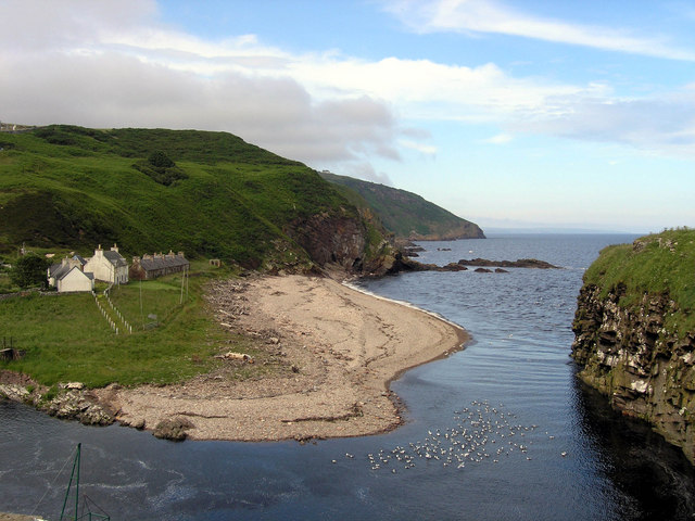 This route leads to the remains of an abandoned fishing station at Berriedale. The site's use dates back to a herring fishery in the early nineteenth century. The herring industry was huge in Scotland and employed many people who had recently been cleared from their homes. However, although large herring fishing stations were set up elsewhere in Caithness, by the 1840s at Berriedale the focus was instead on more lucrative salmon, these being netted at the mouth of the river.