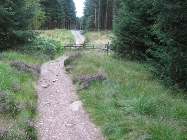 From the FLS car park at Braeval, go northeast uphill on a forest road, then path, reaching the edge of the forest in 2.8km. Continue for 1km along a path across open moorland south of the Menteith Hills escarpment. Re-enter the forest along the upgraded path through the pass which divides the Menteith Hills, to reach a small lochan named Allt a’ Chip Dhuibh. Continue to NN572041 where a narrow path forks left to descend towards Invertrossachs Drive near West Dullater, thence northeast to reach the public road at East Lodge.