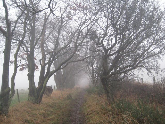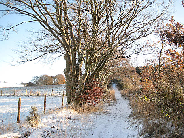 From the A94 at the southwest edge of New Scone, a minor road climbs steeply to the ESE, up the side of the cemetery and continuing beyond along a mud and grass tractor-track. At a minor road at NO138252, a green-and-white Perth & Kinross Council sign on the far/south side indicates 'Coronation Road'. The next 1.5km consists of a grassy path, wet in places, climbing steadily all the way, following a fenced/dyked defined route, with flanking bushes and trees and fields beyond. At the forest edge at NO149246 make a loop to the east through a grazing field (faint path-line only). On entering the forest at NO152244, there is a further green-and-white sign. Continue through the forest on a grassy forest track to the edge of the forest, where a self closing gate takesyou onto a recently upgraded path through land belonging to Northlees farm. Follow the fenced path downhill, past a small pond and through a gate. Continue along the path to another gate which brings you out onto a farm track, next to some houses. Turn right and follow this track to the public road at NO160230, near The Binn. Turn left and follow the road east for about 500m before turning right to pick up the path to Kinfauns Church, and then on down the hill to the A90 at NO165220.