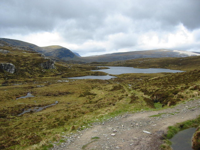 Lone is reached from the A838 at the bridge over the river flowing into Loch Stack, 0.5km north of Achfary. Go along the private road past Airdachuilinn to Lone cottage. From there continue NE by the path up the Allt Horn to the pass just north-west of Creagan Meall Horn. This pass is in the heart of the Reay Forest mountains, surrounded by the barren stony peaks of Foinaven, Arkle and Meall Horn. Descend E down the steep path to An Dubh-loch, climb a short distance and continue E to Lochan Sgeireach on the watershed at the head of Glen Golly. From there follow the path to Creag Staonsaid and thence down to the south end of Loch Dionard. This point can also be reached more directly from An Dubh-loch by descending from its outflow by the Allt an Easain Ghil down a steep and narrow corrie to reach flat ground at the head of Loch Dionard. The second half of the route goes along the east side of Loch Dionard and down Srath Dionard, a long deep glen hemmed in by the steep slopes of Cranstackie and the great north-eastern corries of Foinaven. Srath Dionard is boggy and pathless at first until the track lower down the strath on the left bank of the river leads to the A838 road near Gualin House which is remotely situated beside the A838 road between Rhiconich and Durness.