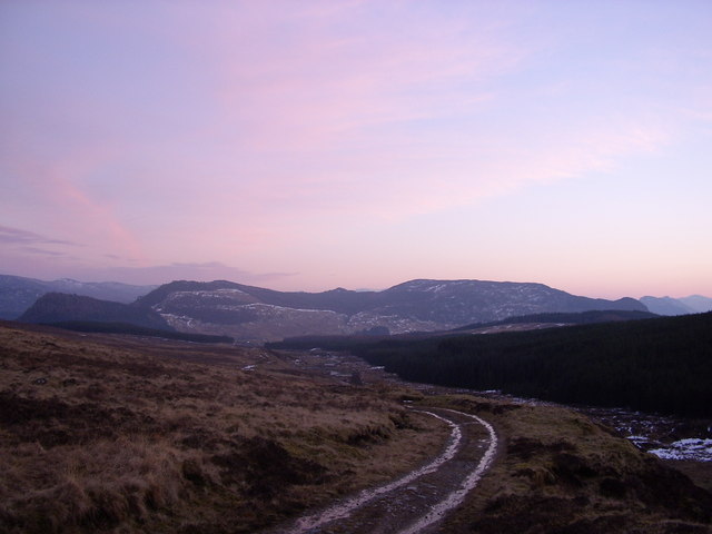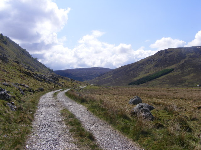 Continue north down the Crom Allt on smooth grassy streamside flats reaching a windfarm access road at NH559028. Turn west along this for 250m then northeast for 350m to reach the older track on the north side of the Crom Allt (true right bank) near the Chalybeate Spring (NH559032, but not evident). Follow the Crom Allt downstream, bearing left at a junction (NH553043) to reach the site of Sronlarig Lodge (now demolished). From there, it is 5km passing Killin Lodge to the public road at the north end of Loch Killin, near Garrogie Lodge, and a further 7km to Whitebridge.