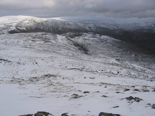 Spey Dam lies 4km west of Laggan village. From the dam, where there is parking, go north up the rough track in Glen Markie for almost 5km, keeping right at NN580966, continuing when this peters out at NN585976 just past the Piper’s Burn. Cross the Markie Burn by a substantial bridge at NH587982 and head northwest up the ridge on the northeast side of Lochan a’ Choire, making for NN576993 at the lip of the corrie. Continue over the flat plateau northeast of Geal Charn and down to Lochan na Lairige.